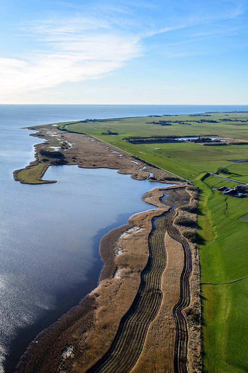 The building and surrounding lands bear clear marks of the past and can be traced as a story through time. Beams with empty dovetail joints turn out to be from the first constructions in the polder; dendrological research shows they were felled the year before the reclamation. Green patina of copper nails in others indicate the reuse of an old dismantled wooden ship. On a much larger scale in space and time, the soil reveals the formation of the landscape. Sand, clay, and silt have accumulated on the land due to the movements of ice caps, sea levels, and tides over millennia. Similarly, historical eras and events such as Fryske Frijheid, Hanseatic cities, dike breaches, the land consolidation laws brought a layered narrative to the contemporary landscape. The barn floor also illustrates these agricultural scale expansions in a patchwork of sand cement poured over bricks, reinforced concrete, and modern Stelcon slabs.